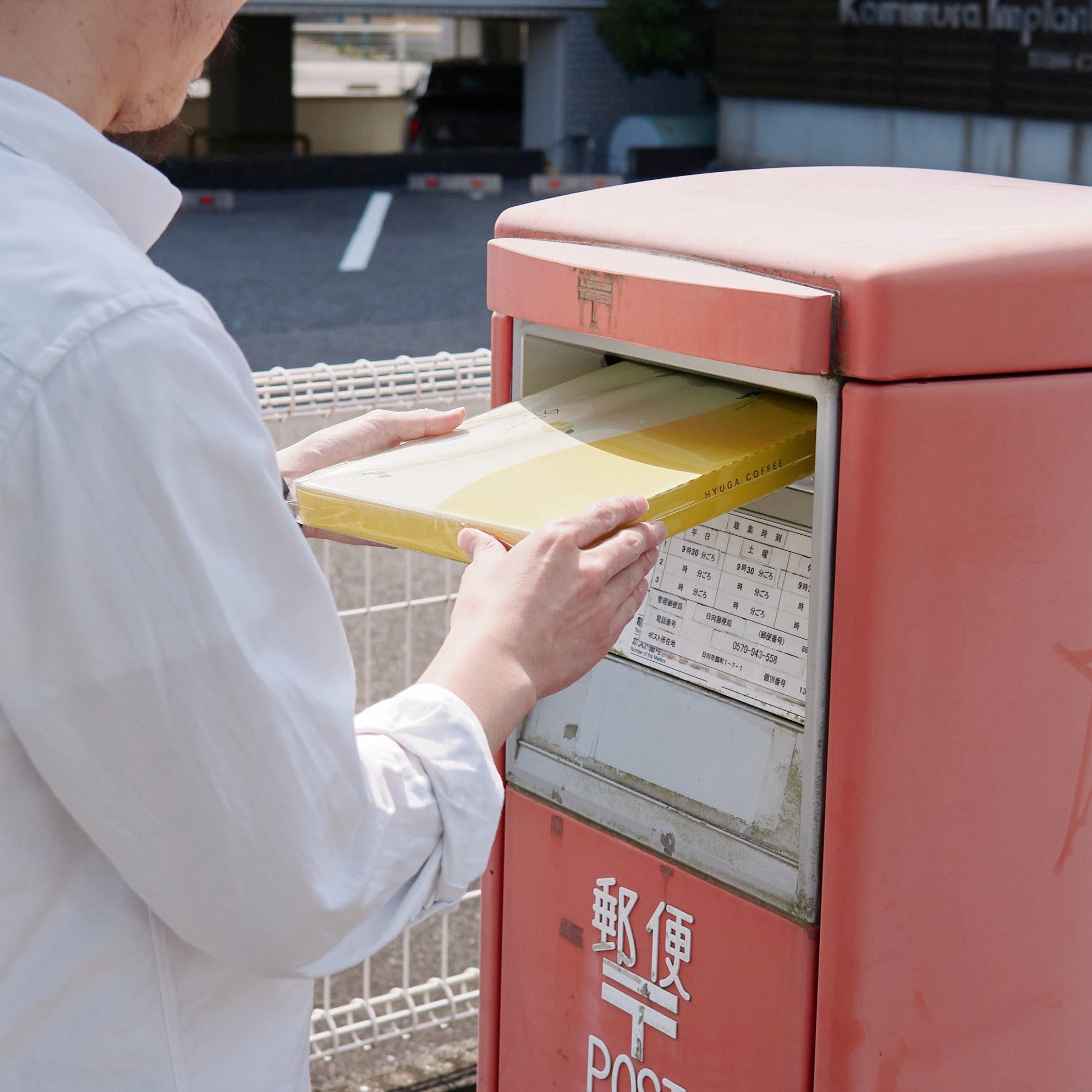 コーヒー豆は日本郵便の「クリックポスト」にて対面不要でご自宅ポストにお届けいたします。また、規定サイズを超える商品に関しましては、佐川急便、もしくは日本郵便「ゆうパック」にてお送りしております。